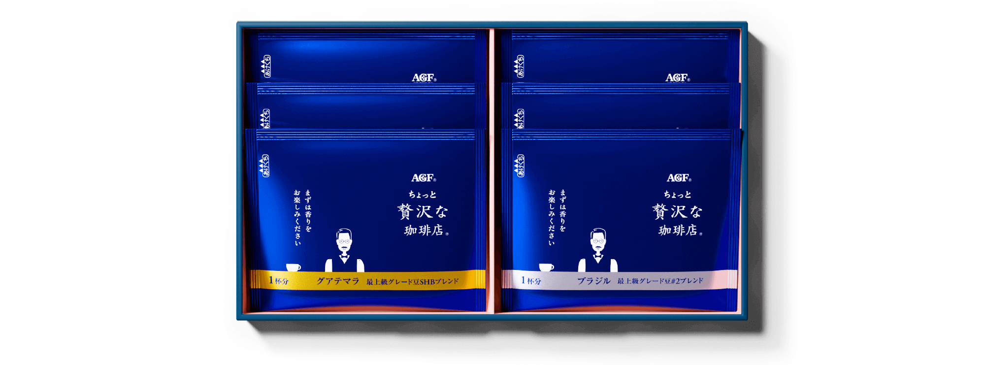 AGF® CAFÉ TIME GIFT これから、もっと仲良くなりたい友だち(同僚)に。 これからも、この一杯を、一緒に楽しむ時間を持てるとうれしいです。 ホットするひとときを。 ホットするひとときを。 AGF® CAFÉ TIME GIFT