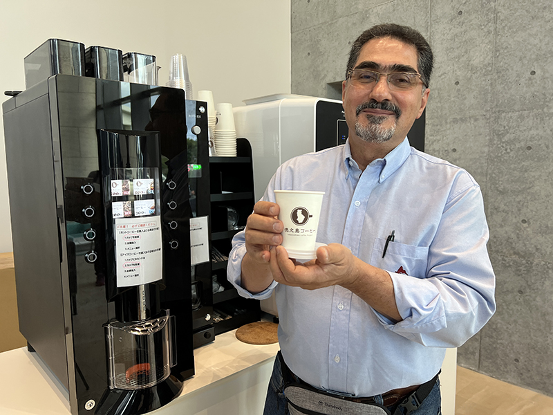 シアボッシュさんが来島してすぐに訪れたのは、2023年9月より伊仙町役場に設置されている徳之島コーヒーのカフェブースでした。