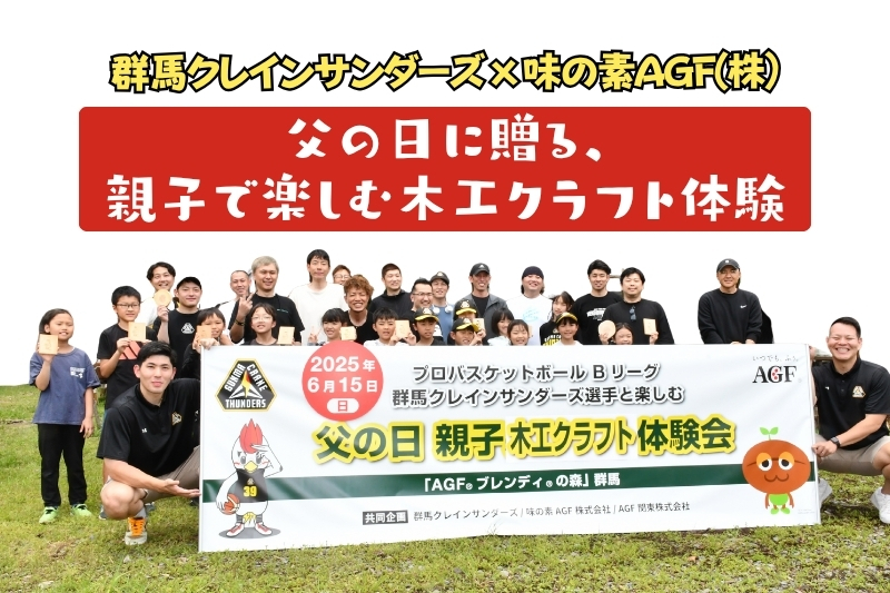 一見、全く違う世界に見えるかもしれませんが、どちらも人を笑顔にし、地域を元気にする力を持っています。群馬県太田市を拠点に活動するB.LEAGUE所属のプロバスケットボールチーム、群馬クレインサンダーズと、同じく太田市に生産拠点を構える味の素AGF株式会社(以下、味の素AGF)。地域に根ざした企業・団体として、持続可能な社会づくりと地域活性化を目指す取り組みを共に進めてきました。2025年6月に地域社会貢献活動の第2弾として、「父の日 親子木工クラフト体験会」を開催しました。