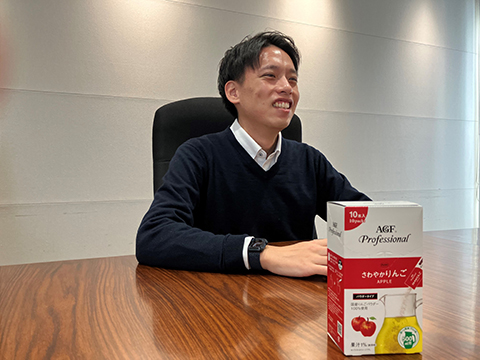 2023年8月、新しい「AGF®プロフェッショナル」シリーズとして発売した「さわやかりんご500ml用」もそうしたプロのニーズに応えるべく市場に送り出したスティック商品です。開発を担当したソリューションビジネス部 澤田さんにお話を伺いました。