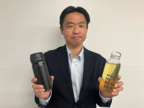 《「ブレンディ®」マイボトルスティック》シリーズ開発に携わったコンシューマービジネス部三本さんも10年以上前からのマイボトルユーザーです。