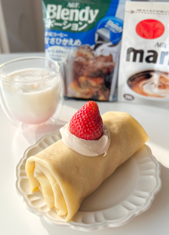 クレープ生地を作るのが苦手な方は、市販品を購入してももちろんOK。マリーム®のみのクリームはお子さま向けに、大人はほろ苦のブレンディ®のコーヒー風味のクリームで楽しむのも良いでしょう。お子さまと一緒に作業をするのもおすすめです。クリスマス料理の締めくくりにぴったりの一品です。