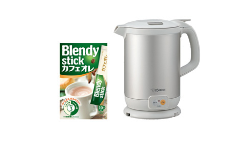 「電気ケトルと〈ブレンディ〉スティックカフェオレをセットで