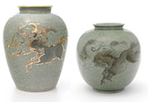 末家焼は亘理町旧末家地区(現亘理町先達前)付近の陶土を使った焼き物です。始まりは元禄時代、亘理伊達家の御庭焼。廃窯と復興を繰り返し、昭和60年に亘理町長瀞に京都で修行した加藤ひろ子氏とその夫、丈夫氏が窯を築き、末家焼窯元・ひろ窯として現在に至ります。津波により窯、作業場が崩壊し、土、道具、上薬の研究データを失ってしまい、御友人の窯を借りて制作活動をつづけている状況です。