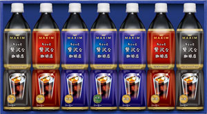 ① AGF〈マキシム〉ちょっと贅沢な珈琲店アイスコーヒーギフト: 深いコクと芳醇な香り、澄んだ後味が特長の〈マキシム〉ちょっと贅沢な珈琲店アイスコーヒー・シリーズから、バリスタエスプレッソ無糖、エクストラ・ブレンド無糖・微糖、シルキーマイルド無糖のバラエティを詰め合わせました。コーヒー豆を贅沢に使ったリッチな味わいがお楽しみいただけます。