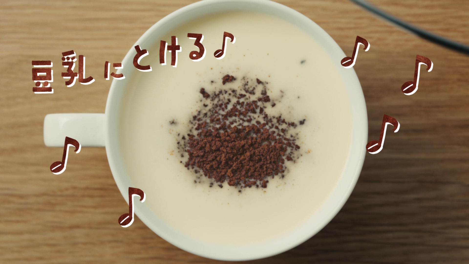 「ブレンディ®」インスタントコーヒーで作る“カフェオレちゃん”の美味しそうで楽しくなる様子に加えて、思わず口ずさんでしまうような音楽の歌詞にもご注目ください。