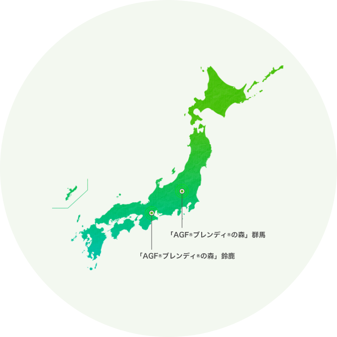 AGFグループ※は、水を使用している企業の責任として、2014年9月より「AGF®ブレンディ®の森」鈴鹿の森づくり活動を開始し、2015年5月から「AGF®ブレンディ®の森」群馬の森づくり活動を展開しています。生産拠点であるAGF鈴鹿株式会社では鈴鹿川、AGF関東株式会社では荒砥川(利根川水系)を水源とする水を使用しています。これらの水を育む鈴鹿山麓と赤城山南麓の森の一角を「AGF®ブレンディ®の森」と名付け、のべ4,000人の社員が参加し、森を整備することで、豊かな自然や清らかな水を育む大切さを体験し、次世代へと継承していくための森づくり活動を実施しています。