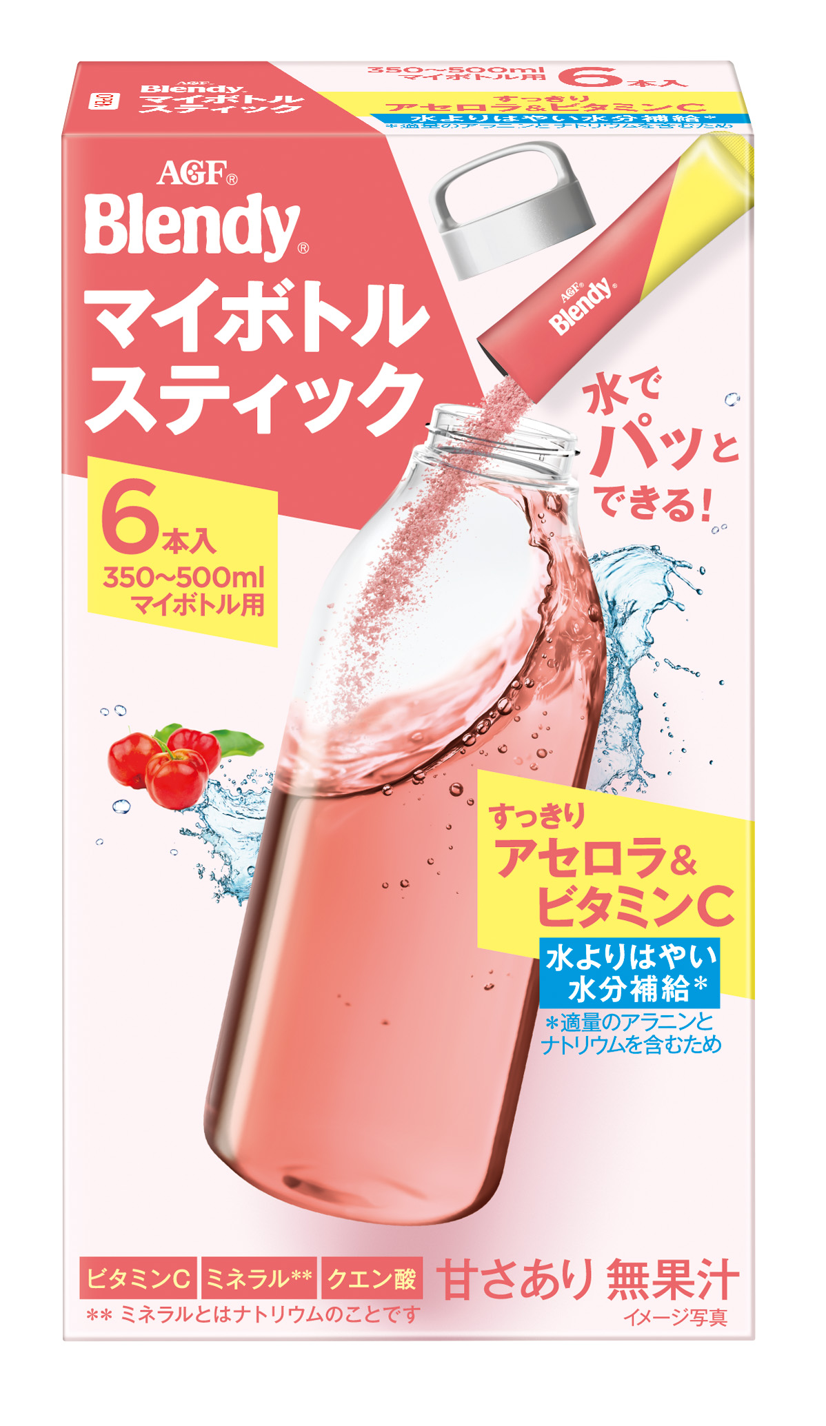 《「ブレンディ®」 マイボトルスティック すっきりアセロラ&ビタミンC》は、すっきりした甘みのアセロラ風味の味わいです。水よりはやい水分補給※2を応援します。