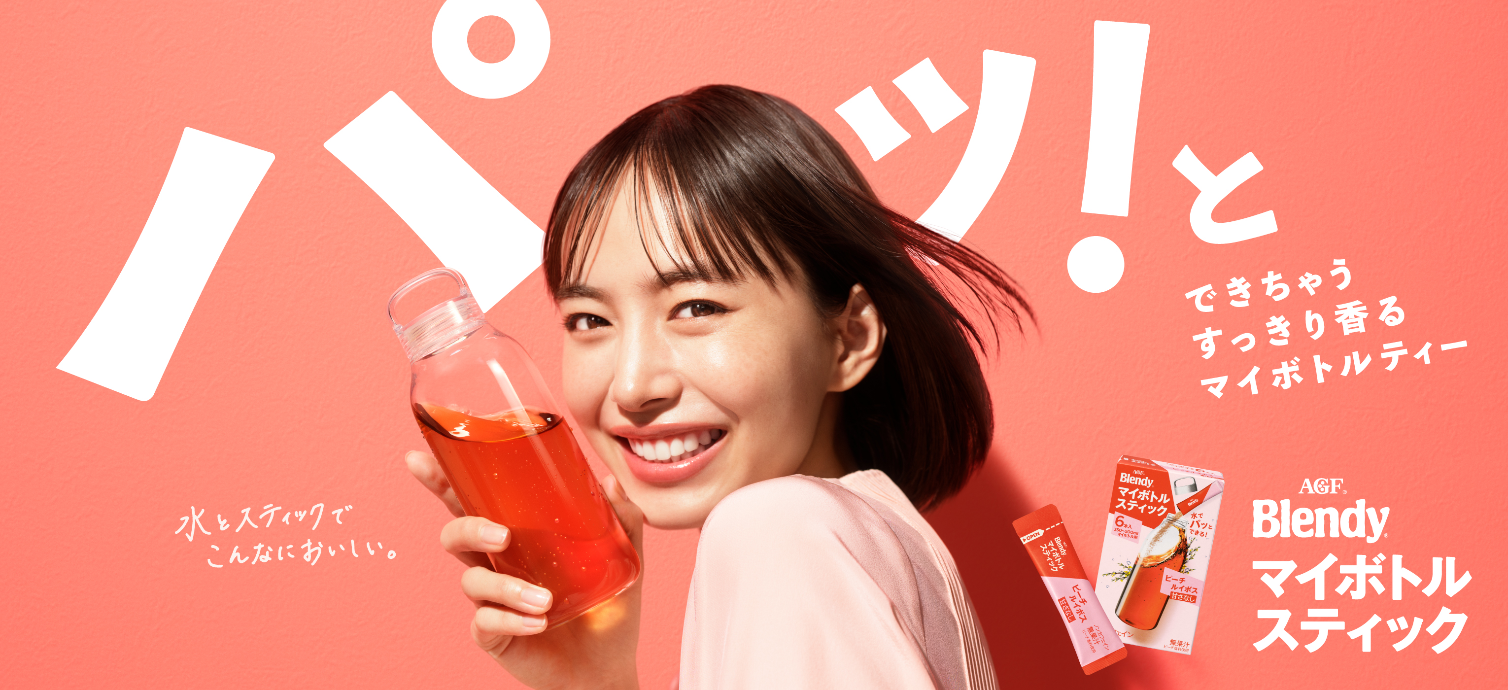 "マイボトルスティック"がカタカナ表記になったことで、パッと見た瞬間に「マイボトルで手軽に楽しめる商品なんだ」と伝わりやすくなったなと感じました。TVCMでも印象的な“パッ”というキーワードが、パッケージにもちゃんと反映されていて、手軽さや簡単さがより伝わるデザインになったと思います。