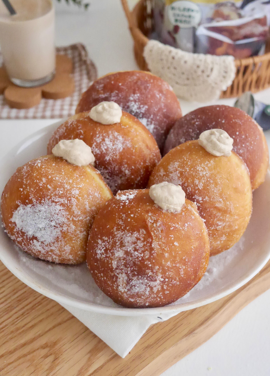 ドーナツが冷めたらカフェモカクリームを詰めて完成